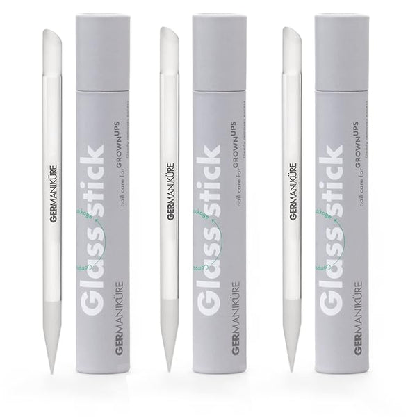 GERMANIKURE Glass Cuticle Stick Set of 3 - Cuticle Pusher Remover Callous & Dry Skin File Nail Shaper - Ethically Made in Czech Republic - Professional Cuticle Care Tool - No Case
