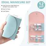 12 Set Manicure Set Bulk Mini Manicure Nail Clipper Kit 7 in 1 Stainless Steel Professional Nail Care Pedicure with Travel Portable Bag Grooming Kits for Christmas Women Men Home(Green)
