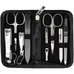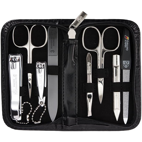 3 Swords Germany - brand quality 8 piece manicure pedicure grooming kit set synthetic leather case black - Made in Germany