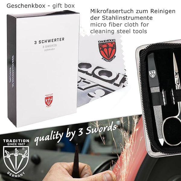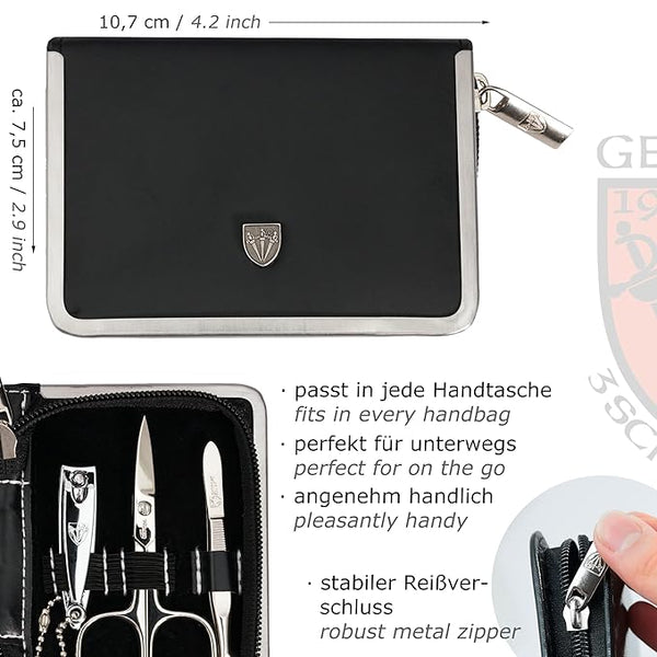 3 Swords Germany - brand quality 6 piece manicure pedicure kit set for professional finger & toe nail care with synthetic leather case - Made in Germany - black