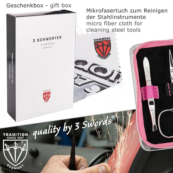 3 Swords Germany - brand quality 6 piece manicure pedicure kit set for professional finger & toe nail care with synthetic leather case - Made in Germany - pink