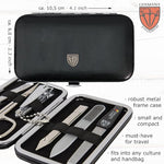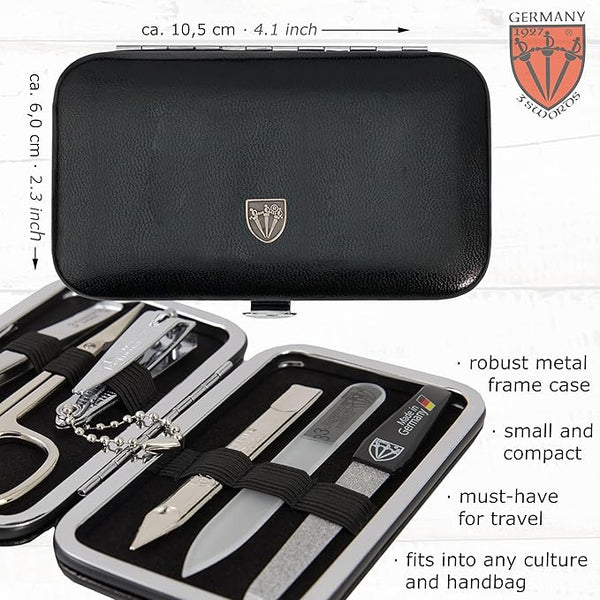 3 Swords Germany - Brand Quality 6 Piece Manicure Pedicure Grooming kit Set - Scissors Metal and Glass Nail File Clipper Tweezers with Synthetic Leather case - Black