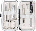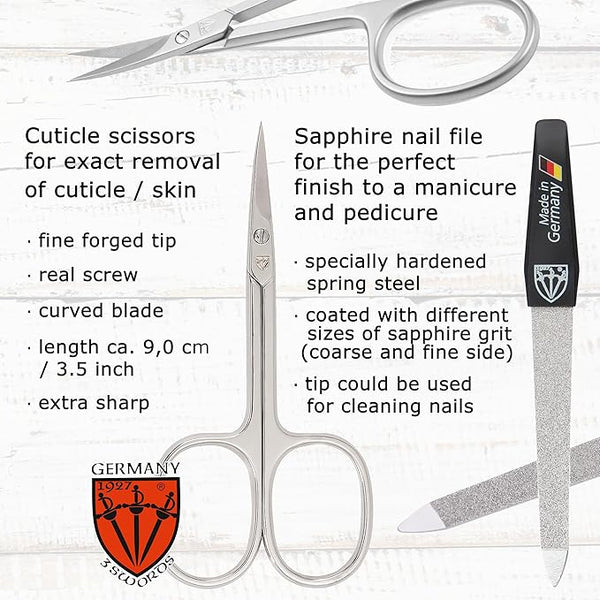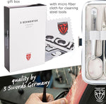 3 Swords Germany - Brand Quality 6 Piece Manicure Pedicure Grooming kit Set - Scissors Metal and Glass Nail File Clipper Tweezers with Synthetic Leather case - Ostrich