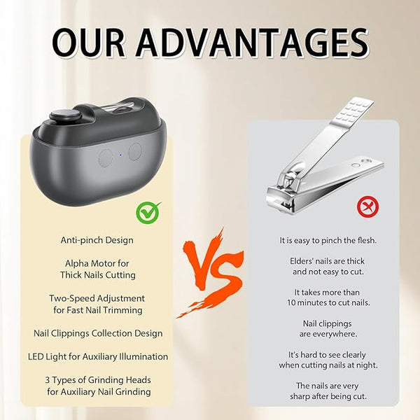 1/2PCS Smart Nail Clipper New 3 in 1 Easy Clip Electric Nail Clippers for Seniors Designed for Extra Hard/Thick Hands Feet Nails Polishing Clipper with Light for Limited Mobility People (032PCS)