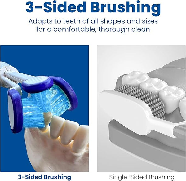The extra soft angled bristles clean all sides of your teeth simultaneously, helping you obtain a brighter smile. Swap your single-sided toothbrush for the Triple Bristle 3-sided brush head and discover a new way to help maintain oral health.