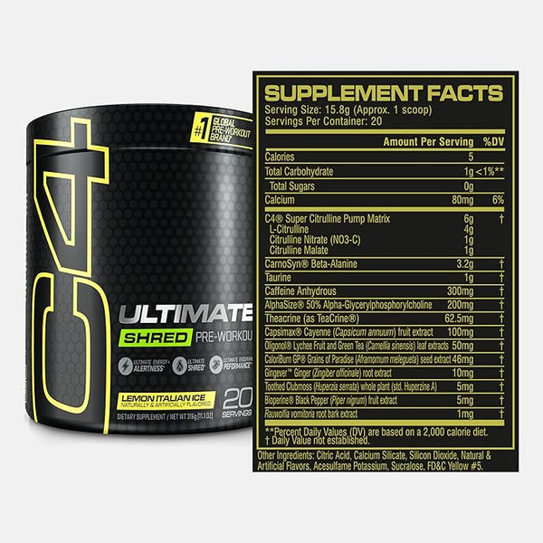As the ultimate choice for explosive energy and fat loss, C4 Ultimate Shred will help to take your fat burning, performance, and endurance results to the next level.