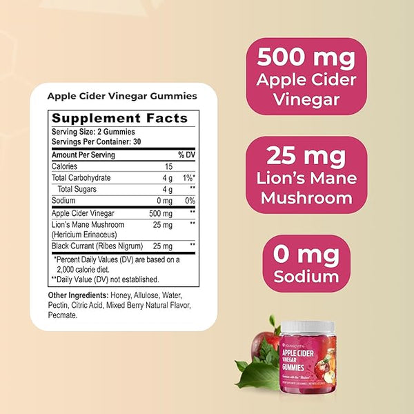 The gummies provide a similar nutritional benefit to liquid apple cider vinegar but without the harsh taste or potential for damaging tooth enamel.