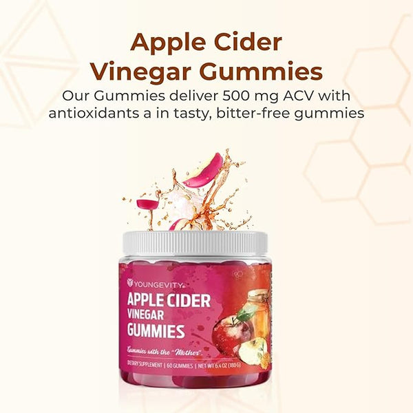 Youngevity Apple Cider Vinegar Gummies are a convenient, great-tasting way to enjoy the benefits of apple cider vinegar without the strong taste or hassle of liquid vinegar.