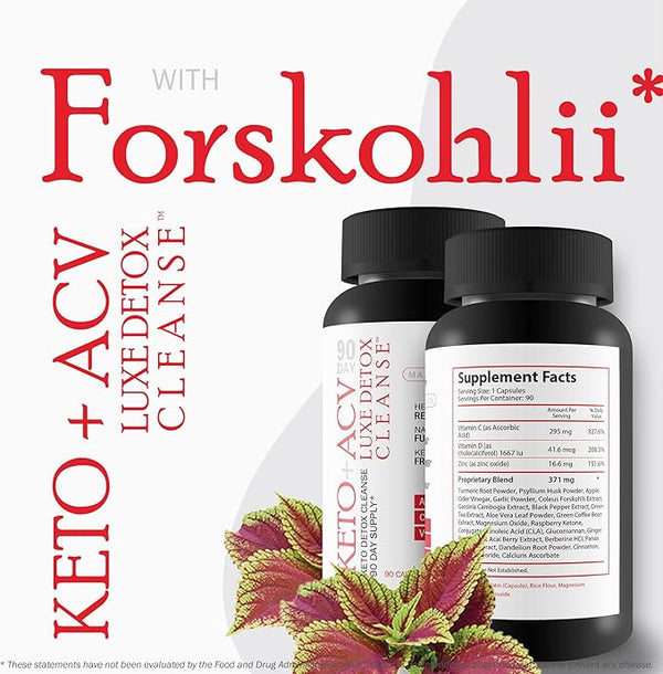 90 Day Keto + Acv Luxe Detox Cleanse - Psyllium Keto Detox Cleanse 90 Day Supply - Help Reduce Gut Bloat & Belly Size - Full Body Cleanser - Premium Keto Acv Luxe Cleanse Keto Lux