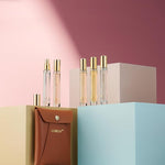 A combination of luxury and practicality, this perfume set for women and men includes a leather pouch and is securely packed with double-walled solid glass that locks in pure perfume oils before. Maintaining an excellent scent purity, this is great for carrying your perfume on the go while being trendy!