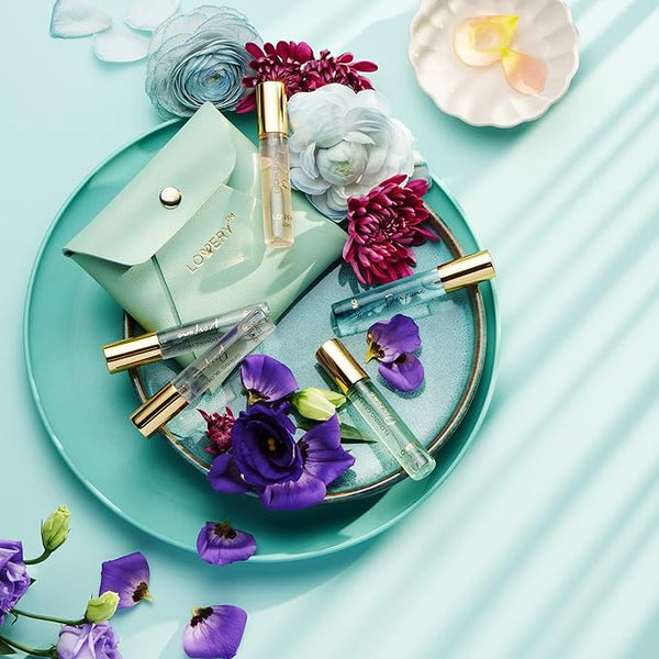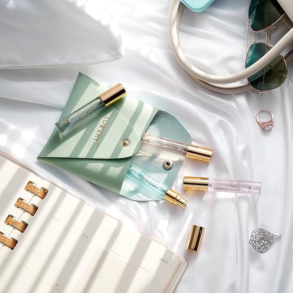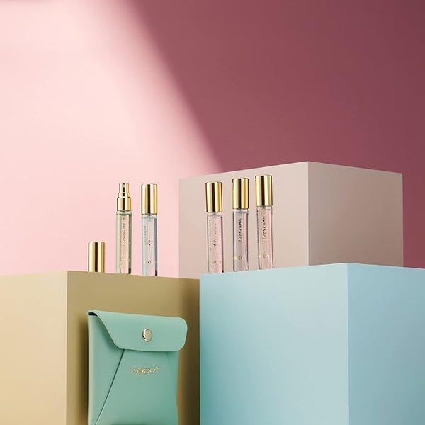 Perfume Gift Sets for Women & Men Elevating your aura through the sophisticated design and fearless fragrances, this perfume set with leather pouch brims with alluring scents to give you confidence and freshness.