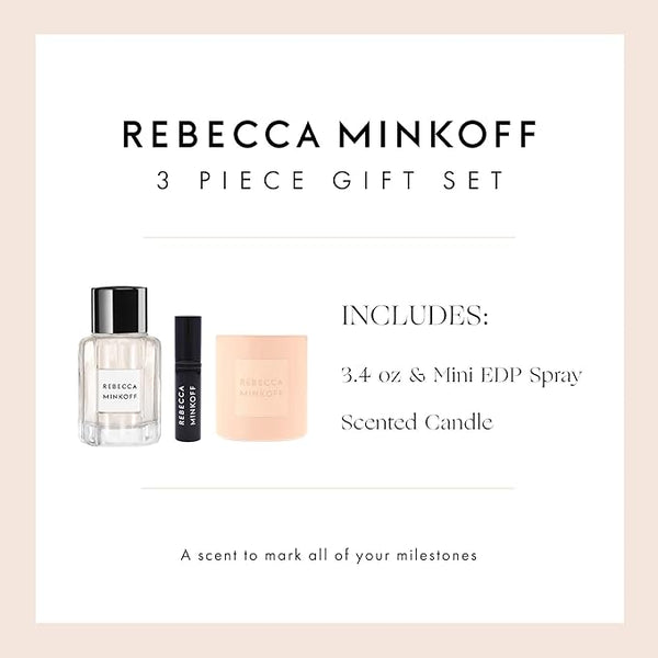 Enjoy the purely modern and fiercely feminine scent notes that make our Eau de Parfum Spray and Scented Candle truly unique. This Fall 3-Pc Gift Set is a special gift for perfume lovers. It includes Rebecca Minkoff 3.4oz EDP Spray, 0.47oz Refillable EDP Spray, and a 6.3oz Scented Candle. This is truly the perfect gift for any special occasion or just for yourself!