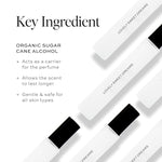 We use Organic Sugar Cane Alcohol in place of frequently used Alcohol SD 40, which has been shown to be aggressive on the skin. We strategically blend botanical-based and lab-made ingredients to ensure our perfumes are safe and hypoallergenic.