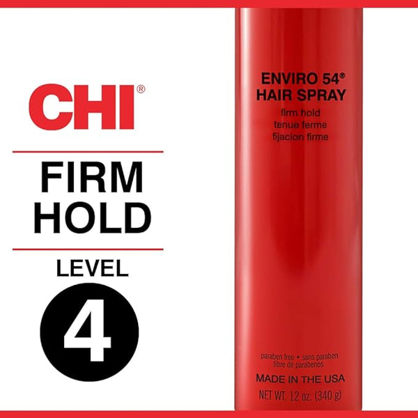 The CHI Enviro line consists of a flexible hold hairspray and firm hold hairspray. Both are versatile, lightweight and do not leave build-up on the hair.