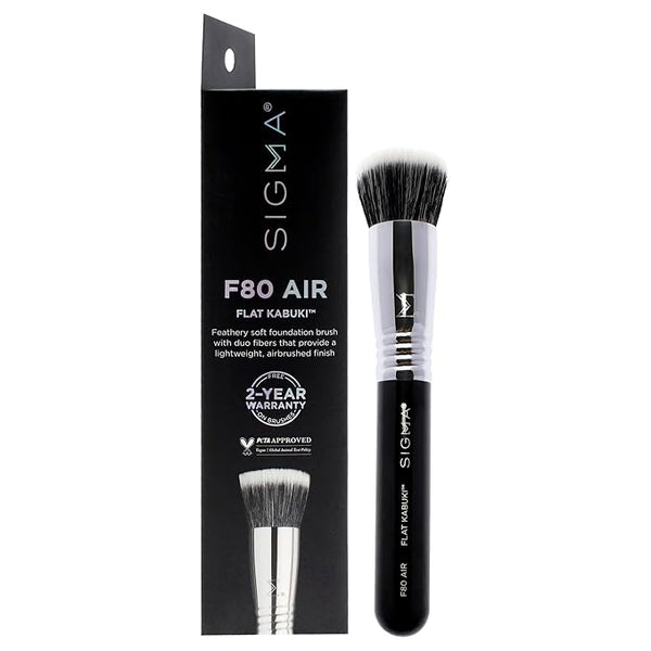 The F82 Round Kabuki features a round brush head with very soft and dense fibers. Made with exclusive Sigmax fibers, this brush provides a flawless, high definition finish with mineral powder when using a circular motion to blend for best coverage without any absorption of product. Unique Feature: Dense and rounded head Function: Buffed powder foundation application Recommended Use: Blend mineral products onto the skin