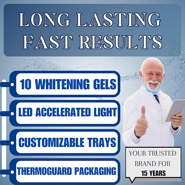 Using our professional strength peroxide gel, you will remove soda, food, coffee, and tea stains.
