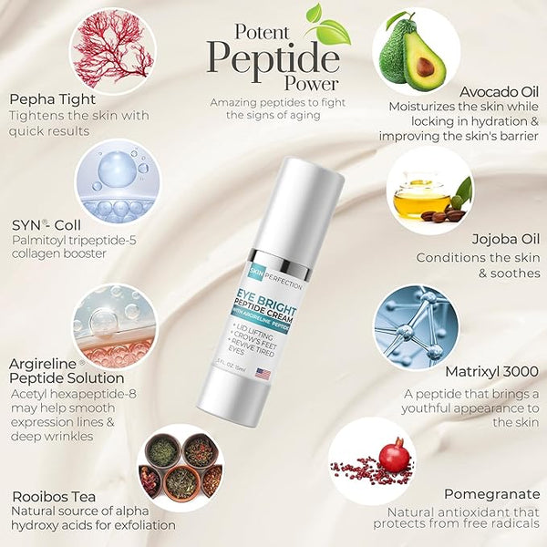 Unleash the Power of Peptides for Youthful, Radiant Skin with Skin Perfection's Eye Bright Anti-Aging Eye Cream. Ultra-nourishing skin-loving ingredients makes your skin look incredible.