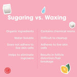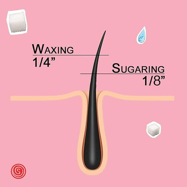 This means less discomfort for you and less trauma to your skin. Sugaring does remove dead skin cells ? so as the hair is removed, your skin is also getting exfoliated! Wax has been known to remove more than just the hair, since it can adhere directly to live skin cells, which makes waxing more painful and irritating. Wax cannot be applied to an area more than twice at the most.