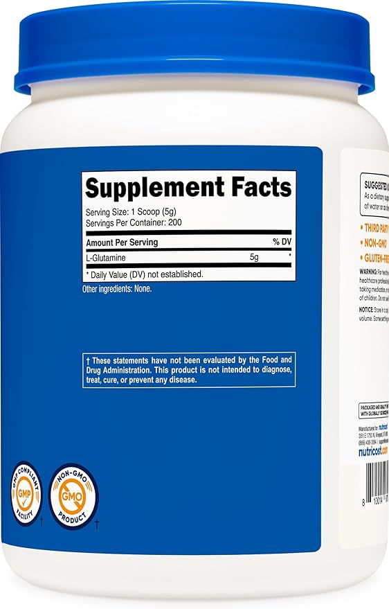 Product descriptionNutricost L-Glutamine PowderL-Glutamine is an amino acid that is produced by the body. It is considered a conditionally essential amino acid, which means that the body can synthesize it...