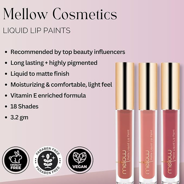 Dress up your lips with the intense shades from Mallow! This lightweight liquid lipstick gives your lips a finish that¡¯s perfectly flirty. The full coverage, long wearing lip paint wears all day long and feels light for all day comfort. With a spectrum of gorgeous shades from bold to almost nude, we offer a shade that is perfect for every look, skin tone and occasion.