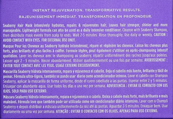 The nutrient-dense Seaberry Oil contains bio-active compounds, vitamins, amino acids, flavonoids and omega fatty acids to nourish the hair and scalp and provide exceptional antioxidant protection from environmental and physical aggressors associated with coloring, straightening, texturizing and daily styling.