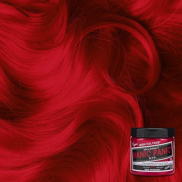 Red Passion is a lovely, medium red dye with hints of pink. This strawberry red shade can be used on hair lightened to a very light level 9 blonde. For results that glow under blacklight, we recommend lightening hair to the lightest level 10 blonde.