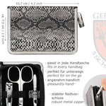Each of our manicure sets comes in an attractive and sturdy gift box. In addition, our brochure "Fingernail and Toenail Care" is included with each set. You can find a lot of general information there, an overview of the most important manicure and pedicure instruments as well as some tips for caring of the case. A fine microfiber cloth for cleaning the contained steel instruments is also included in the case.