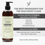 Aromatic, clarifying Verbena shampoo nourishes the scalp & boosts shine with natural & organic plant ingredients including, aloe vera, jojoba oil, coconut oil, & chamomile extract. It enhances shine without stripping your hair's natural oils, moisture & color & leaves hair feeling clean without drying or oily. Infused with balancing essences of lemon, orange, mint, basil, litsea cubeba, lemongrass, & cedarwood to keep the body grounded & serene.