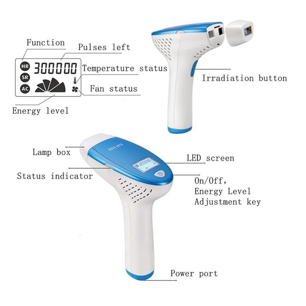 MLAY permanent ipl hair removal device home use has 5 energy settings that control the speed of the pulses. The higher the level,the higher the power. You can use the low level (1-2) for the first time. It is also ideal when treating sensitive areas such as the bikini line or under arms.