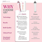 Experience professional-level exfoliation in the comfort of your home! Revolutionary spinning discs gently remove dead skin cells, revealing a brighter, smoother complexion. Perfectly calibrated vacuum suction effectively unclogs pores, allowing for 20x better skincare absorption.