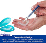 Viscous whitening gel, when used with well-fitting moldable trays, stays on the teeth during treatment for better and faster results.