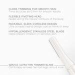 The durable, washable micro-thin blade cleanly cuts hair near the base ? as close as 0.1mm ? for smooth results. This specially rounded hypoallergenic, stainless-steel blade tip is gentle on both hair and skin, especially in more sensitive areas like underarms and the bikini area.