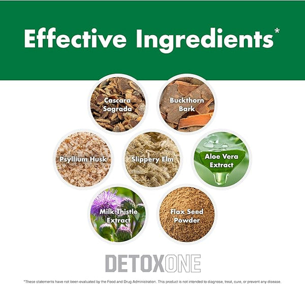 Looking for a premium all in one daily detox solution? Look no further! DetoxOne has 11 all-natural herbal ingredients such as Milk Thistle, Flaxseed powder, Senna Leaf, Aloe Vera & More! This all-natural supplement helps to support the body's detoxification process and maximizes nutrient absorption*.
