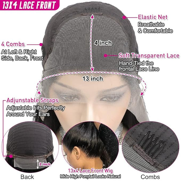 Hermosa 220% Straight lace front Human hair wigs cap Size/features