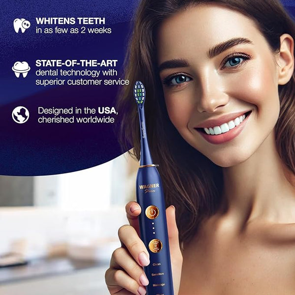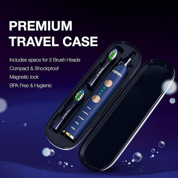 The Whiten+ Edition toothbrush combines elegance, intelligence, and performance with a powerful 48,000 VPM motor, customizable vibration settings, and advanced features like a pressure sensor and smart timers for personalized cleaning. It includes 8 DuPont brush heads, a sleek travel case, and offers effective whitening with two modes that remove up to 10 times more plaque than a manual toothbrush. With a long-lasting lithium-ion battery providing up to 30 days of use on a single charge, this toothbrush is designed for durability, convenience, and optimal oral hygiene.