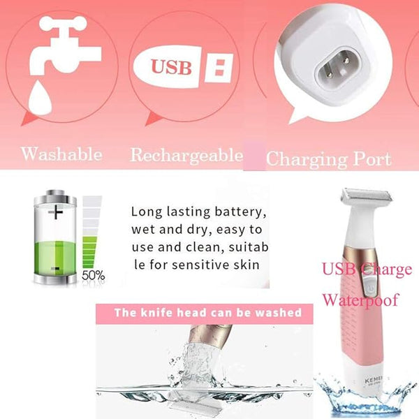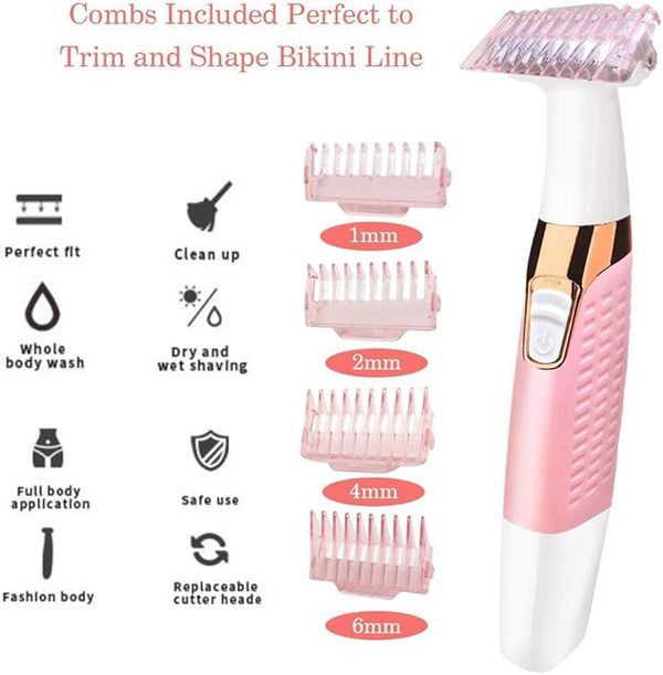 Electric Shaver Trimmer for Women Full Body,Painless Lady Wet & Dry Electric Bikini Line Trimmer Body Hair Remover for Leg Underarm Eyebrow Public,USB Rechargeable Cordless Waterproof