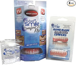Do you feel insecure about your smile? Does your smile need a quick and inexpensive makeover? Now you can have your own teeth whitening system! Unlike dentures, the Instant Smile Makeover set are comfortable, flexible and fit over your teeth similar to press on veneers. The perfect adult makeover that is easy to fit within a few short minutes before transforming your teeth into the perfect smile. The top and bottom veneers are easy to fit after dropping the teeth and thermal beads into hot water. The easy step by step instructions are included on the back of the packaging. Perfect for everyday use, at your work, college, reunions, weddings and any type of family gathering. This kit includes upper Instant Smile Flex veneer, Instant Smile Lower Teeth veneer, and two packs of fitting material.