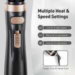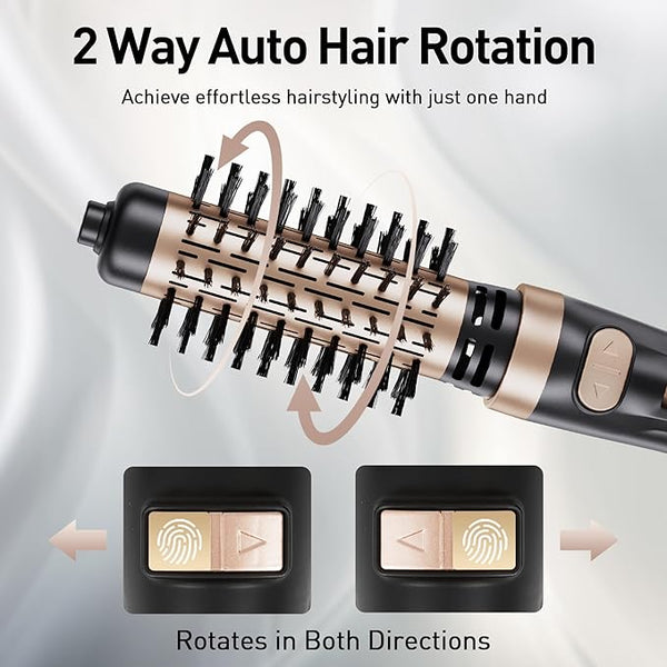 This rotating hair dryer brush has 2 interchangeable accessories to style your hair easily; it is powerful enough to dry your hair, at the same time it styles.