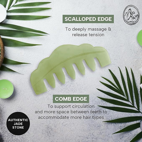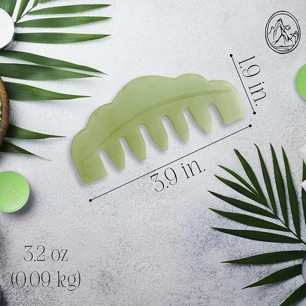 Mount Lai Hand-Carved Natural Jade Gua Sha Scalp Comb ? Scalp Massager & Scraping Guasha Tool for Relaxation Blood Circulation & Cooling