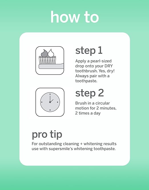 The Supersmile Accelerator works with any toothpaste, but when used with Supersmile Toothpaste, apply it to a dry brush. Calprox activates with saliva, not water?so a dry brush ensures maximum whitening.