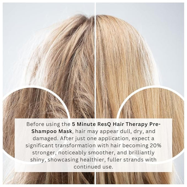 5 Minute ResQ Hair Therapy Pre-Shampoo Mask is your go-to for healthy, toxin-free haircare. In just 5 minutes, this pre-shower mask strengthens, hydrates, and brings shine to your hair, making it stronger from the first use. Its blend of essential oils and antioxidants repairs and protects, suitable for every hair type and free from harmful chemicals.