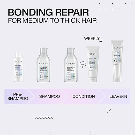 Acidic Bonding Concentrate helps repair damage from different types of damage like, chemical damage from hair color and lightening, as well as heat styling and environmental factors. **with use of acidic bonding concentrate intensive treatment, shampoo & conditioner vs. non-conditioning shampoo