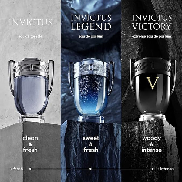 Absolute hero. Blessed by the gods and ready to take on any challenge. Invictus men fragrance embodies the victory. A phenomenal shock between sharp freshness and animal sensuality. Two forces that nothing (and no-one) can resist. A mythical scent for a man who is a legend.