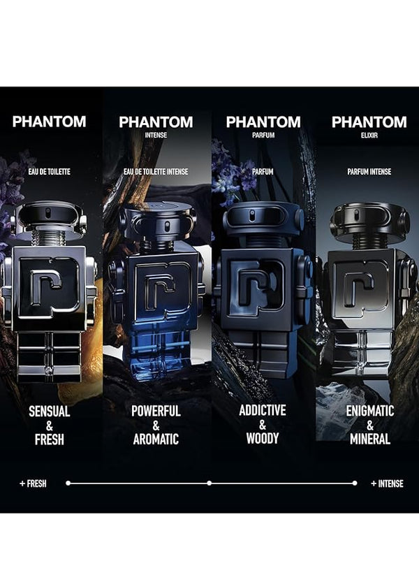 Daring. Sensual and Intense. Phantom Parfum is a captivating and refined gift for the night bird. Eye- catching and covetable, this masculine fragnance is an instant collectors item.