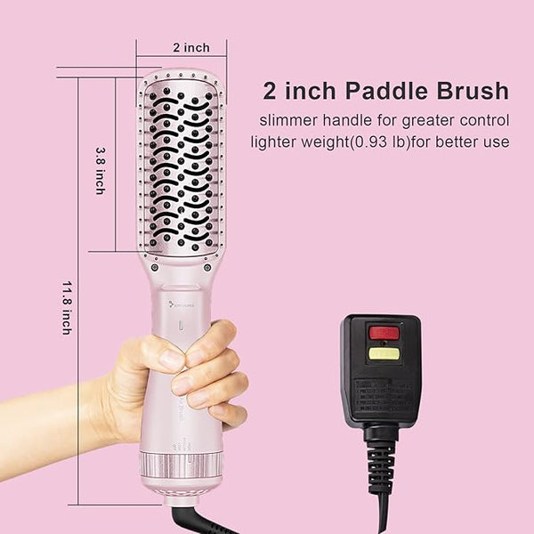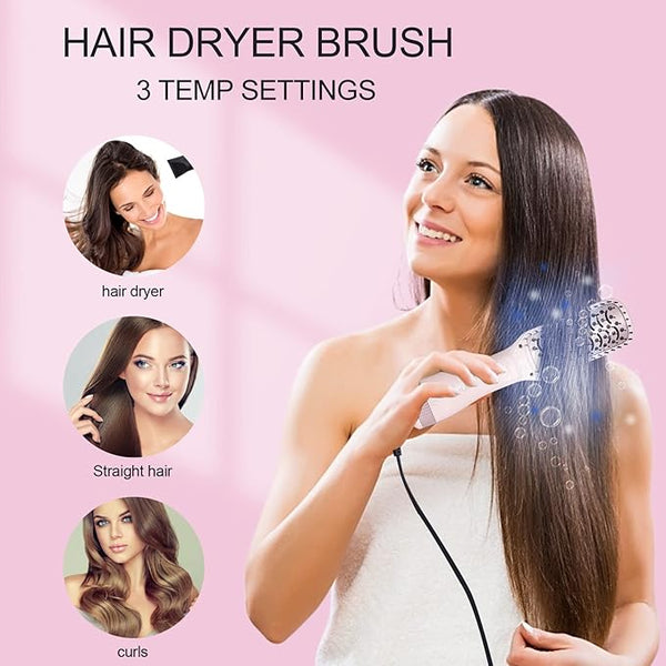 The Negative Ion Hair Dryer Brush effectively eliminates frizz and locks in hair's natural moisture. The paddle-designed hot air comb fits hair better, and can straighten hair while drying, saving styling time.