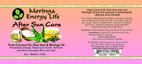 This Moringa Oil blend is 100% pure and cold pressed aloe vera juice, coconut oil, plus moringa oil, for oil for sun burn relief oil benefits for your skin in a deep moisturizing extract, with 93 vitamins and essential nutrients of the Moringa tree, plus antioxidant properties for skin renewal in deep, natural moisture of aloe oil plus moringa and coconut oil for sun treatment and skin for your Body and Face, now in this 8oz sunburn oil for soothing your skin after sun exposure.