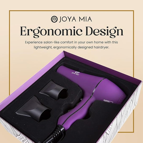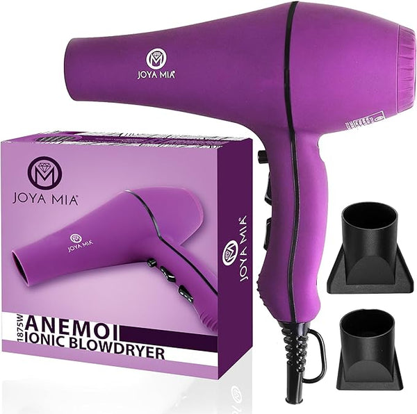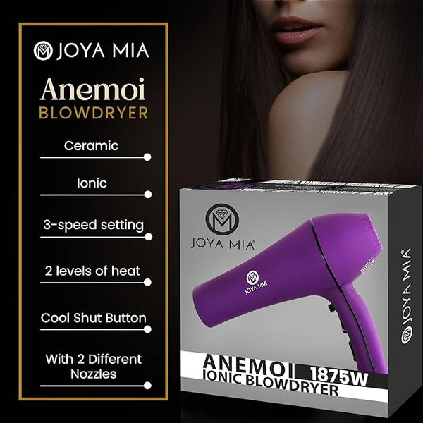 Transform your hair care routine with the JOYA MIA Anemoi 1875W Ceramic Hair Dryer, featuring advanced ceramic technology. This innovation ensures even heat distribution for gentle drying but also helps to minimize heat harm and frizz, leaving your hair smoother and shinier with every use.