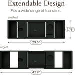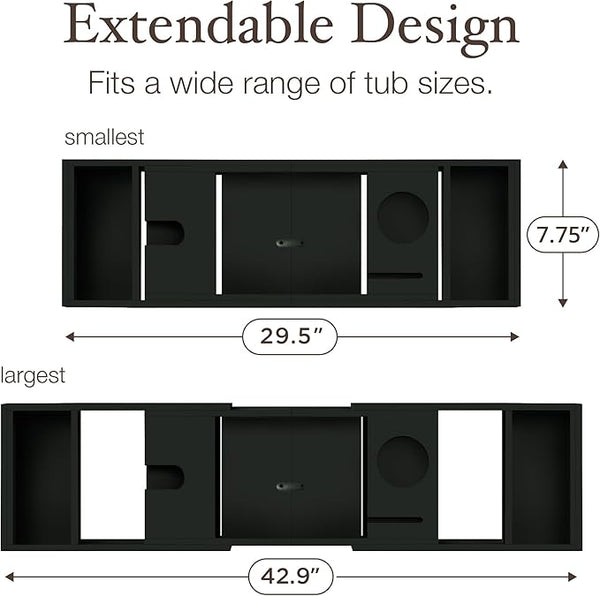 The caddy can be extended from 27.75¡± till 41.5¡± to ensure it fits your tub, whether it¡¯s wide or small. Simply pull the sides to extend or push in to narrow. What¡¯s more, the caddy needs no more than a half inch ledge for support.