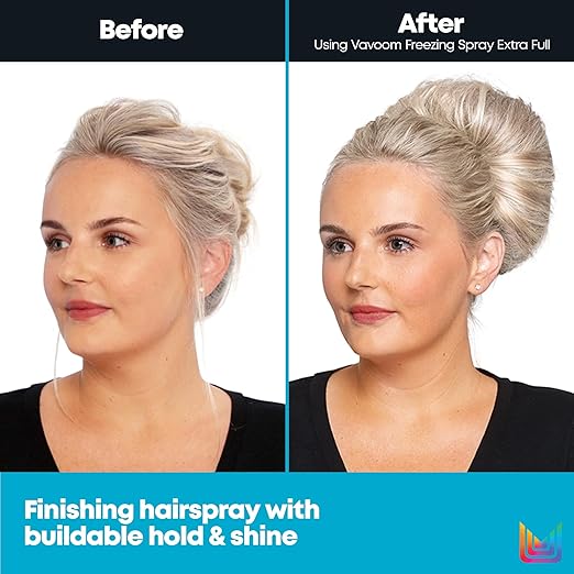 Vavoom Extra Hold hairspray is a fast-drying hairspray, provides an extra-firm hold and prevents frizz. Vavoom Extra Full hairspray provides continual hold with workability to lock in full volume.
