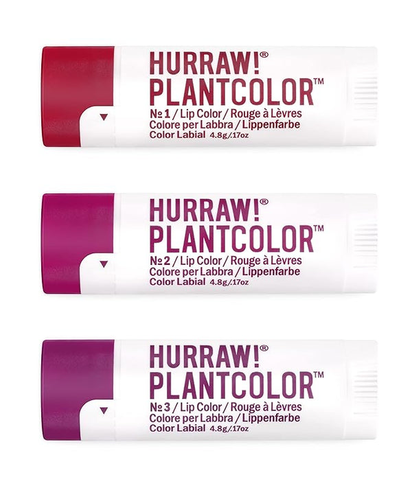 Hurraw! PLANTCOLOR ¢à1 (RED), ¢à2 (RED/PURPLE) and ¢à3 (PINK/PURPLE) Lip Color Bundle